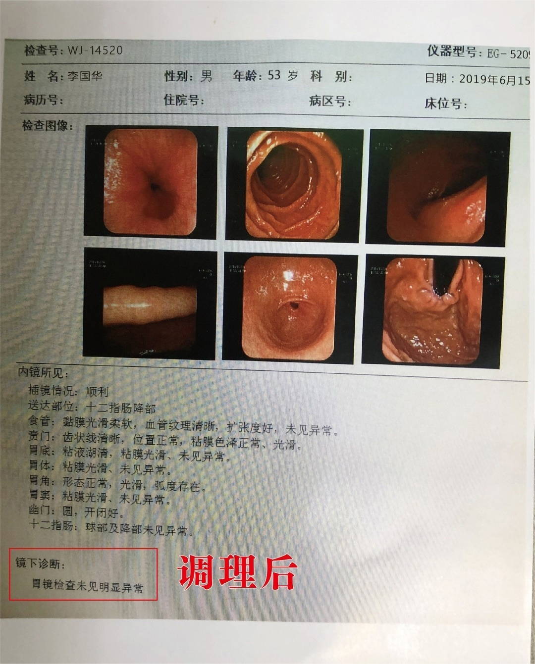 现在想想自己真的的绕了太多弯路才导致病情不断加重。其实胃病也没有多难治。 一是要遇对医生,二是要一鼓作气治疗,庆幸自己遇到了良医。(后记:李先生治疗好后为刘主任介绍了不少患者,都得到非常好的效果,不仅仅感谢刘主任,也感谢李先生的热心介绍)